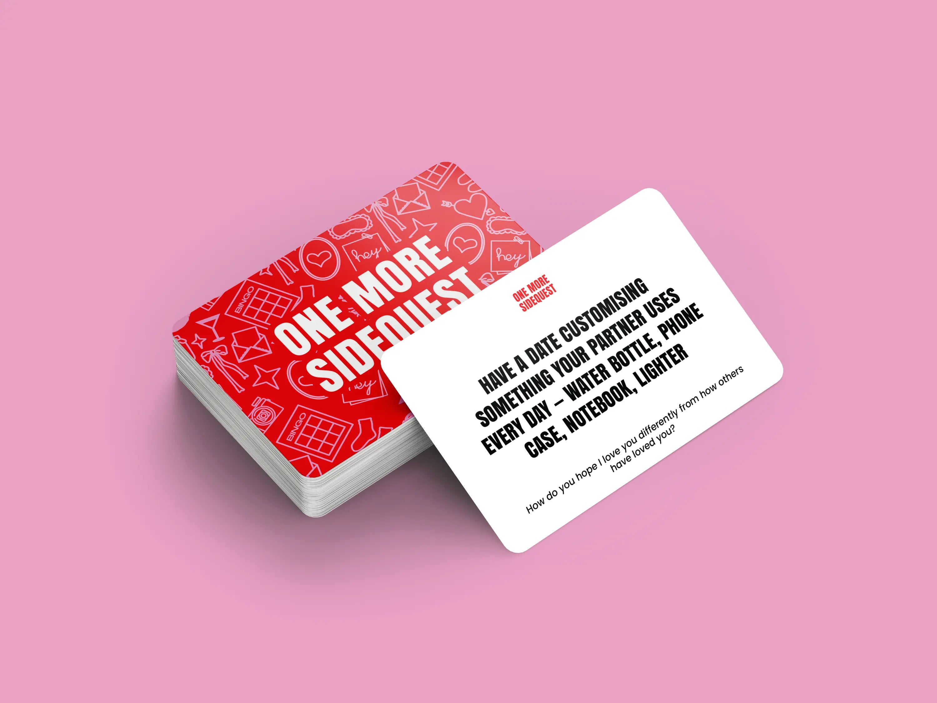 One More Sidequest is a lifestyle brand creating decks of real-life challenges designed to help you feel something again. Whether that’s connection, discomfort, creativity, or just the thrill of doing something you wouldn’t normally do on a Tuesday.
