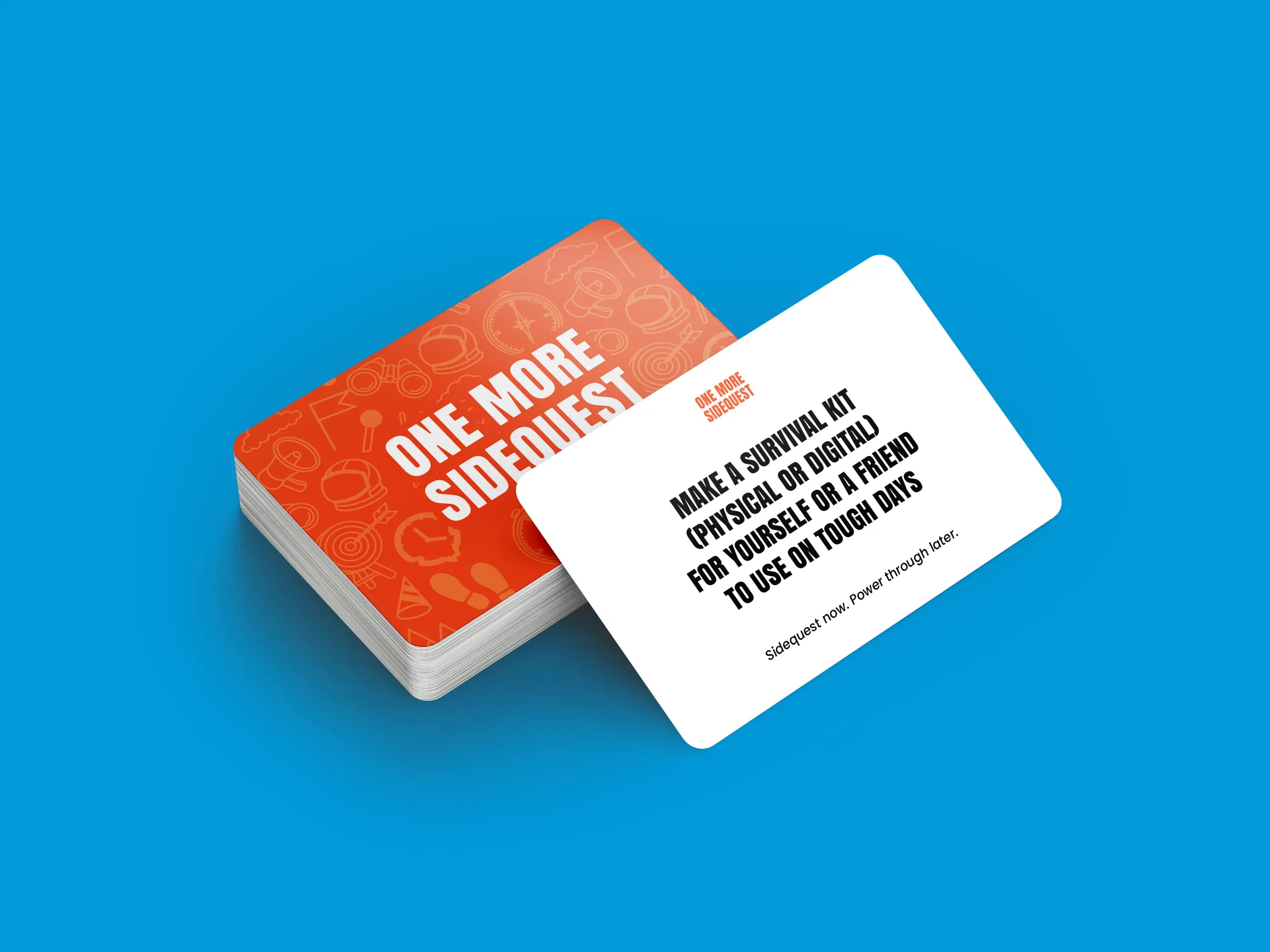 One More SideQuest is a deck of real-life challenges for curious, creative, slightly unhinged people who want to feel something again.